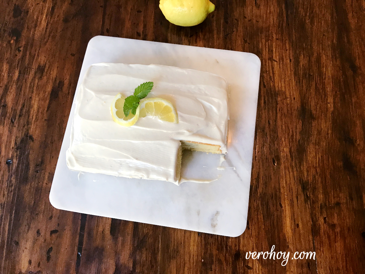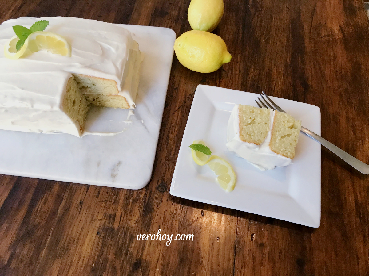 Este pastel de limón lo puedes espolvorear con un poquito de azúcar glass o puedes preparar el frosting de queso crema. 🙂 Aquí te dejo la receta del frosting de crema